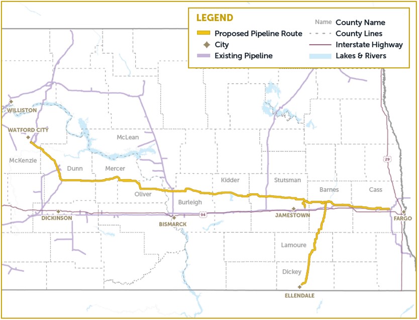 WBI Energy anticipates the project will be built over two construction seasons and be placed into service in two phases. The first phase is expected to begin in northwestern North Dakota and end in central North Dakota with the second phase to start in central North Dakota and end in eastern North Dakota. The project is designed to transport natural gas from the Bakken producing region in western North Dakota to serve communities and a range of industries throughout the state.